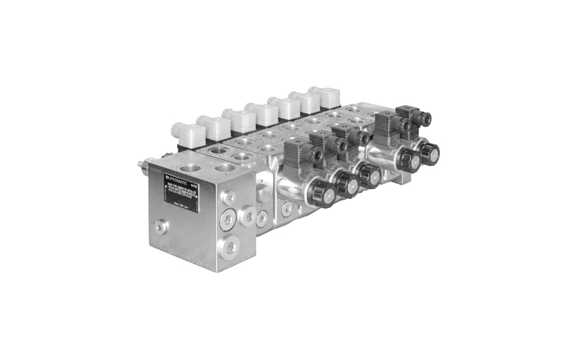 The BLS6 directional control valve is a stacked valve assembly with load sensing feature. It can be assembled with up to 8 working sections (proportional and solenoid directional valves together). Inlet elements for fixed and variable displacement pumps are available. P1, P2 and T1 ports are 3/4” BSP threaded. Each working section is equipped with a meter-in compensator that keep the flow constant, independently from load changes. A and B working ports are 1/2” BSP threaded. The lever override is available as option.