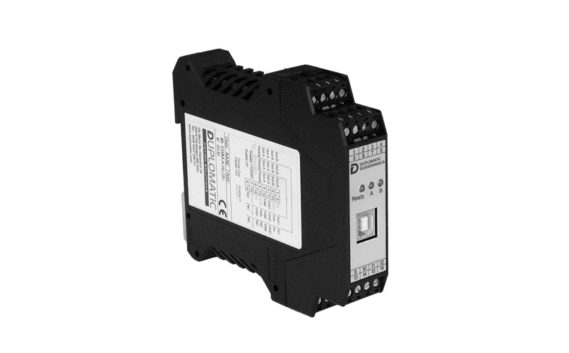The power amplifier generates a PWM signal up to 2.6 A. Depending on how it is configured, the card allows the control of one proportional directional valve (2 solenoids) or the control with analog signal of one or two single solenoid proportional valves (flow rate, pressure, directional ..) or the control via three digital input signals of a single or double solenoid proportional valve; ramps and max eight values per command must be pre-configured via software. There are functions for curve linearization and failures monitoring.