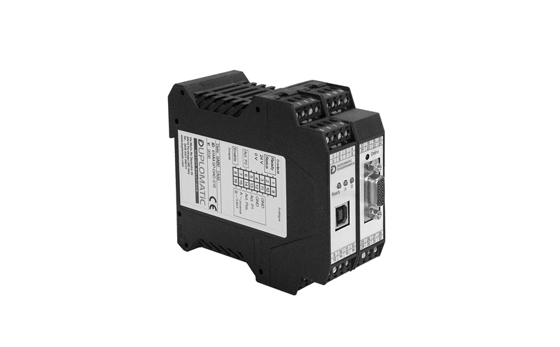 The EWM-SP-DAD digital card manages the position control with pressure limitation of hydraulic actuators equipped with a digital position sensor and analog pressure sensors. This card is an axis controller with two types of position control: stroke dependent deceleration (SDD) or numerical control (NC). It communicates with the PLC via the integrated Profibus interface. The output value, voltage or current type, has to be configured via software.