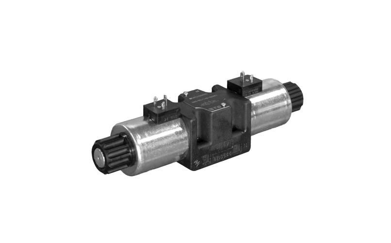 DS5 are spools directional valves that control passage and direction of a flow, for subplate mounting. They are available with 3-ports and 4-ports design, with spring return or mechanical detent. The valve body is made with high strength iron castings provided with wide internal passages in order to minimize the flow pressure drops. Wet armature solenoids with interchangeable coils are used. The valve is available with DC or AC solenoids. DC solenoids can also be fed with AC power supply, by using connectors with a built-in rectifier bridge. Alternative to the standard manual override there are knob, boot and mechanical detent device. The valve is available also with mounting interface with the Y port for external drain and with fixed or adjustable soft-shifting devices.