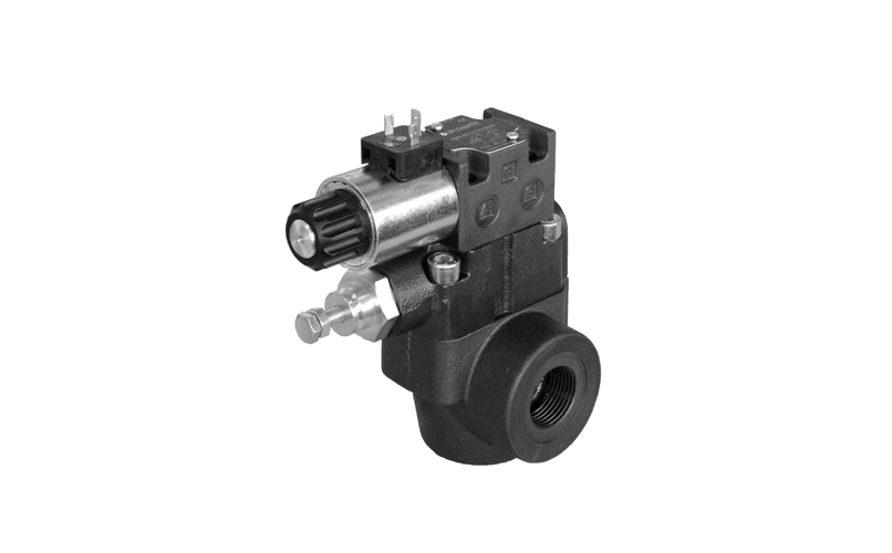 Five versions that allow the discharge of the entire flow by a solenoid valve or the selection of up to 3 pressure values are available. The selection of the second and third pressure value is obtained by means of a pressure relief valve placed between the main stage and the solenoid valve. Ports for external pilot of the valve and for pressure gauge are present. These valves are available in three pressure control ranges up to 350 bar.