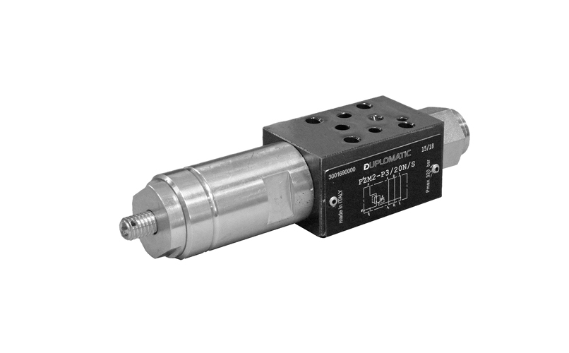 The PZM2 is a stackable three-port pressure reducing valve, direct operated. PZM2 is a normally open valve. Hydraulic fluid flows freely inside the pressure conduit. When the inlet pressure exceeds the value set with the adjustment screw, the valve discharges just the excess. It is used to reduce the pressure on secondary circuit branches ensuring the stability of the regulated pressure even when the flow rate passing through the valve varies. The three-way design provides protection of the secondary circuit from pressure surges since it allows a reverse flow from the actuator to the T discharge line.