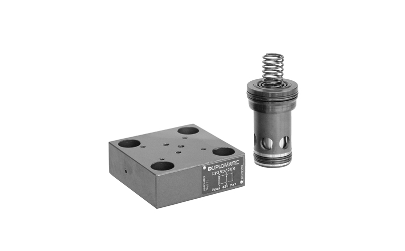 The logic elements are available in five sizes: 16, 25, 32, 40, 50 and 63. They are designed to perform complex hydraulic circuits with high flow rates and low pressure drops. The range include cartridges for flow and directional control, and cartridges for pressure control, with some cracking pressures. A low leakage version is also available. Control cover with pilot port and several control functions are available, including covers with mounting interface for ISO 4401-03 valves and with pressure relief valve.